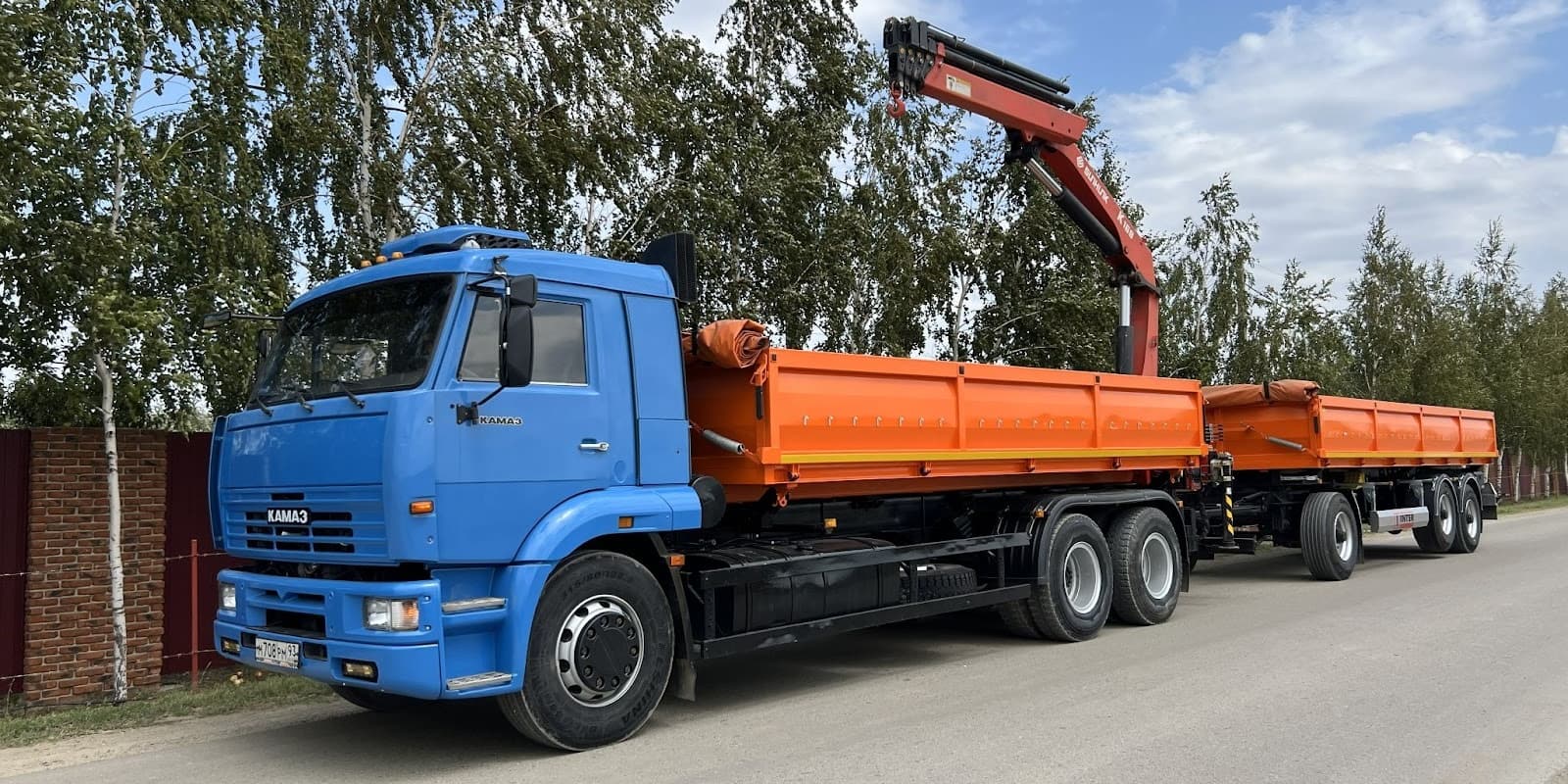 Камаз-Манипулятор с трехосным прицепом. Вместимость до 20 поддонов